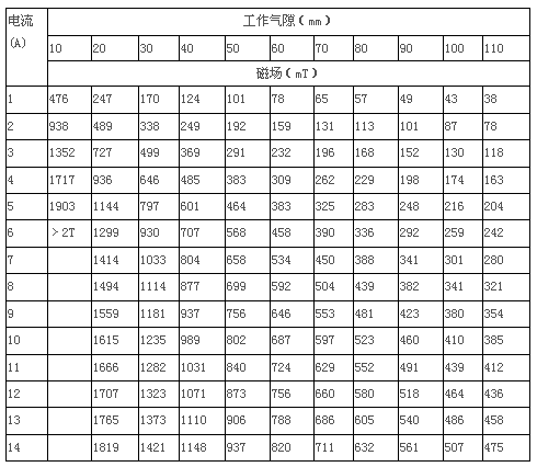 3.5 剩 磁:≤12mT, 工作氣隙10mm時